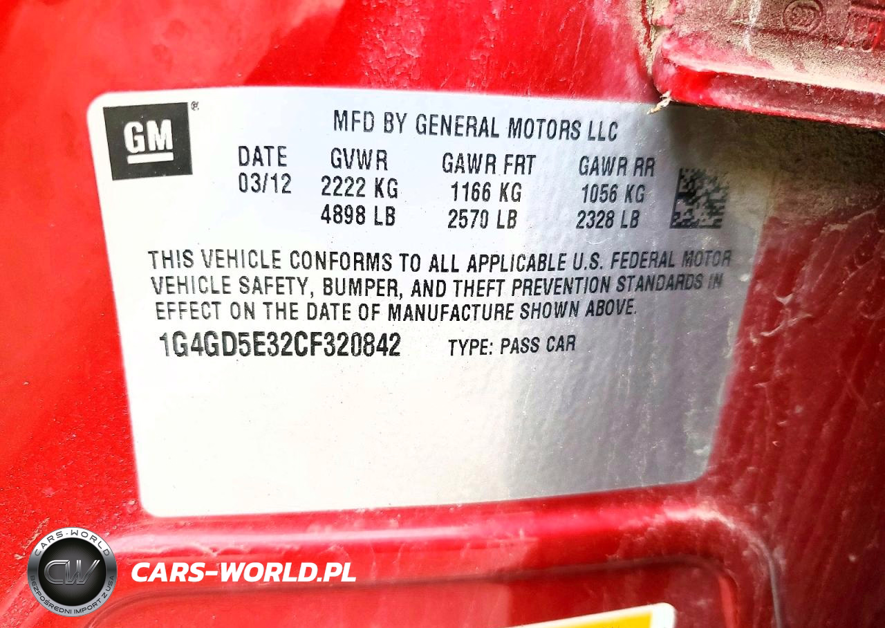 Copart Nr: C-48128366 VIN: 1G4GD5E32CF320842 Port: Elizabeth, NJ