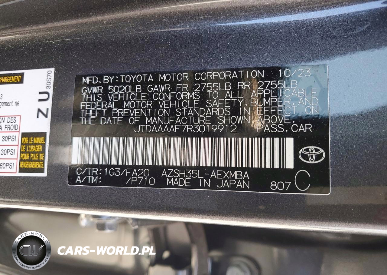 Copart Nr: C-48130126 VIN: JTDAAAAF7R3019912 Port: Savannah, GA
