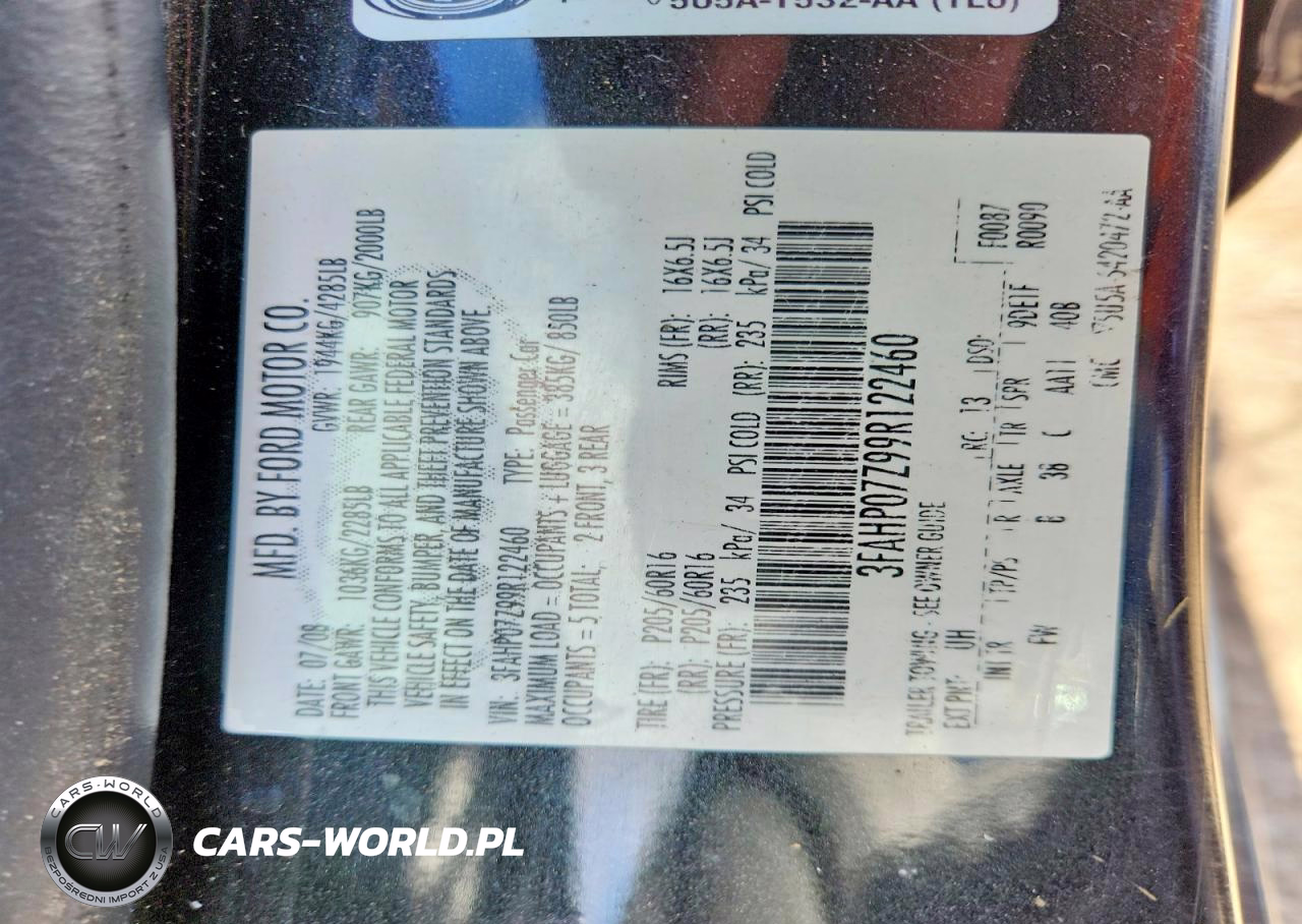 Copart Nr: C-48149856 VIN: 3FAHP07Z99R122460 Port: Elizabeth, NJ