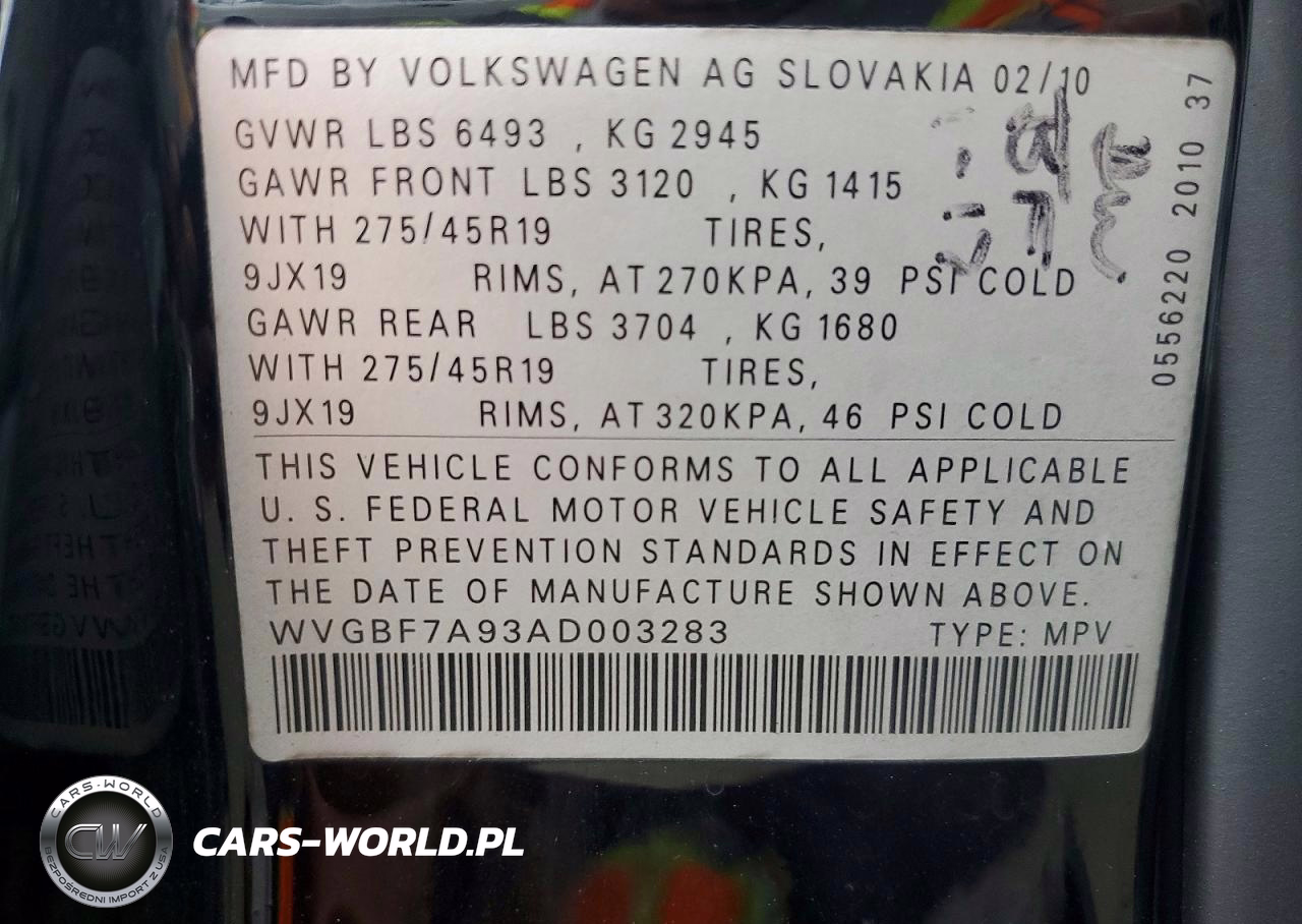 Copart Nr: C-48153986 VIN: WVGBF7A93AD003283 Port: Los Angeles, CA