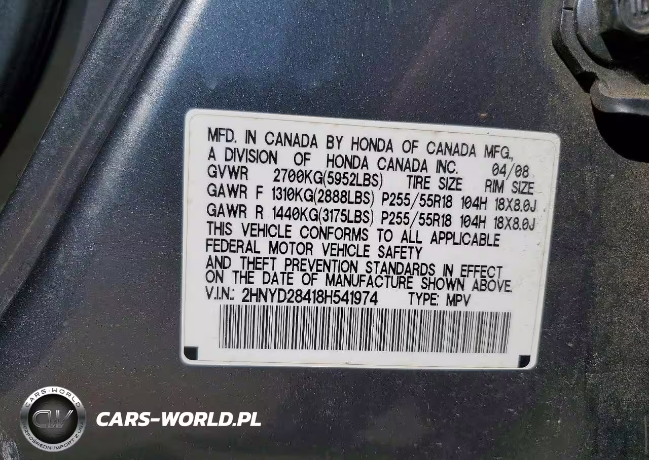 Copart Nr: C-48154086 VIN: 2HNYD28418H541974 Port: Savannah, GA