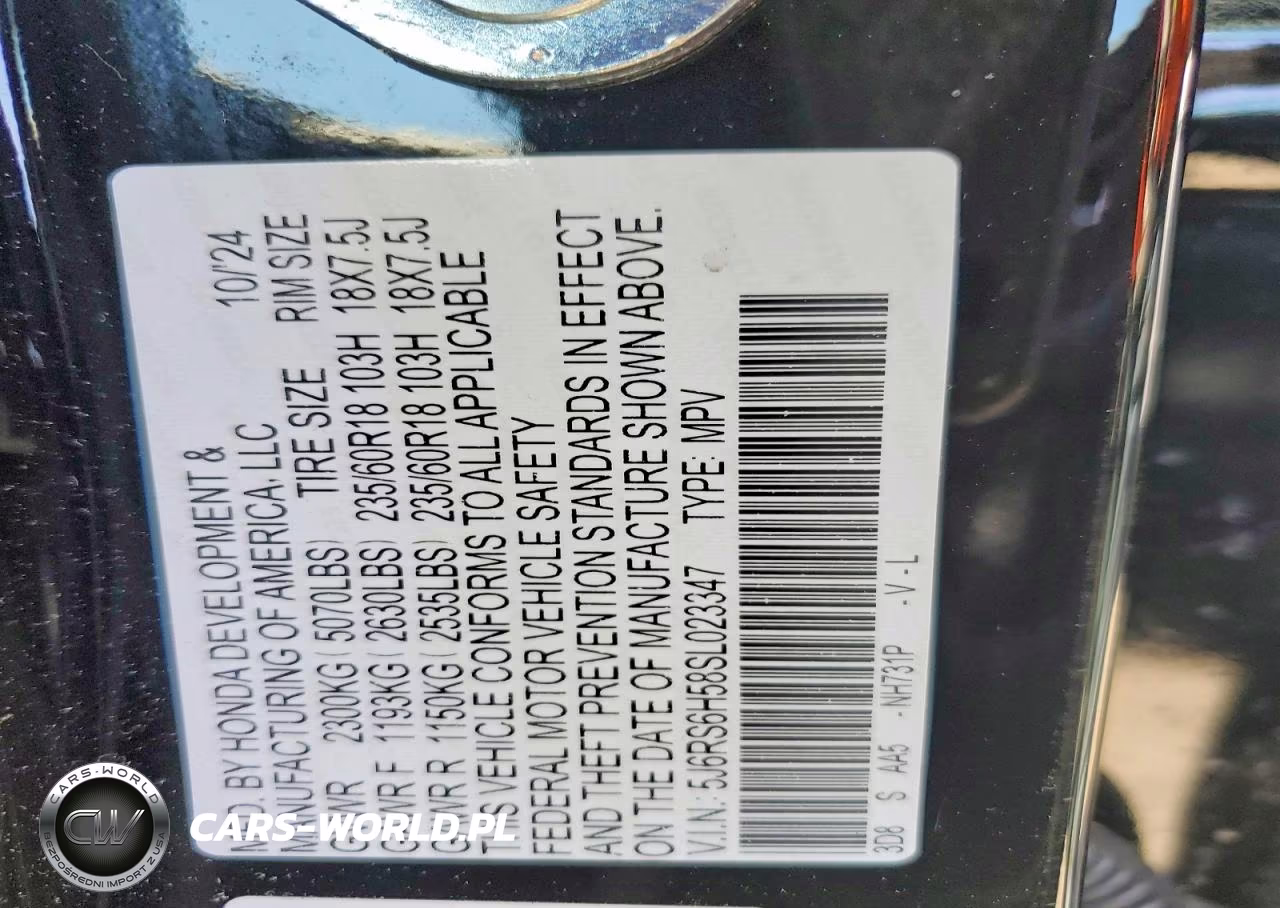 Copart Nr: C-48157366 VIN: 5J6RS6H58SL023347 Port: Elizabeth, NJ