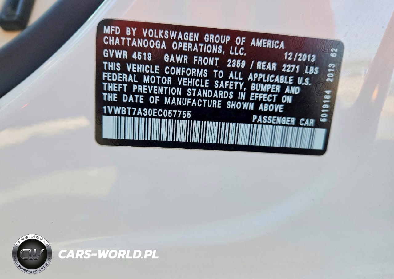 Copart Nr: C-48158376 VIN: 1VWBT7A30EC057755 Port: Savannah, GA