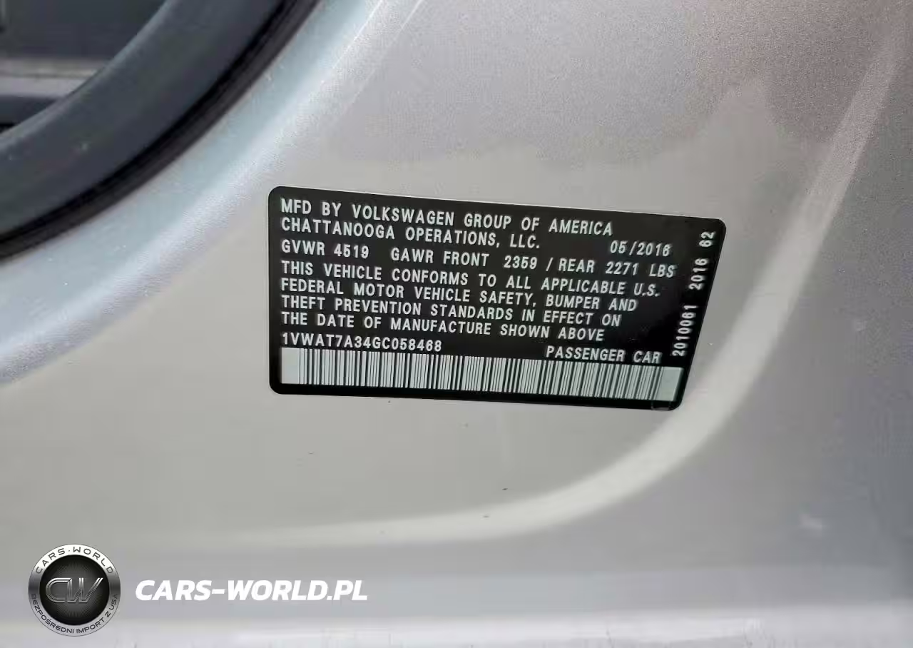 Copart Nr: C-48168296 VIN: 1VWAT7A34GC058468 Port: Los Angeles, CA