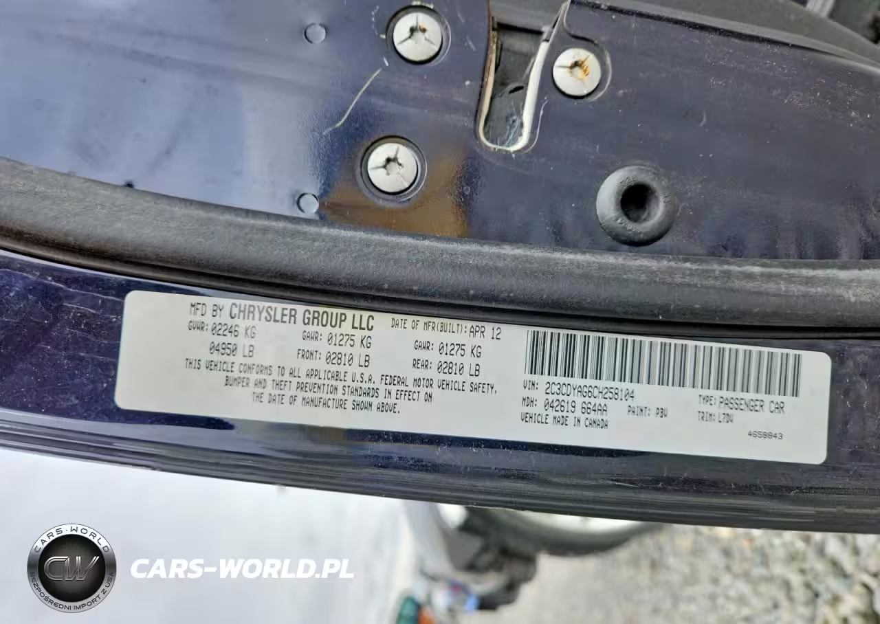 Copart Nr: C-48169006 VIN: 2C3CDYAG6CH258104 Port: Indianapolis, IN