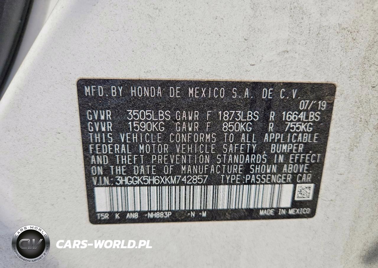 Copart Nr: C-48174466 VIN: 3HGGK5H6XKM742857 Port: Los Angeles, CA