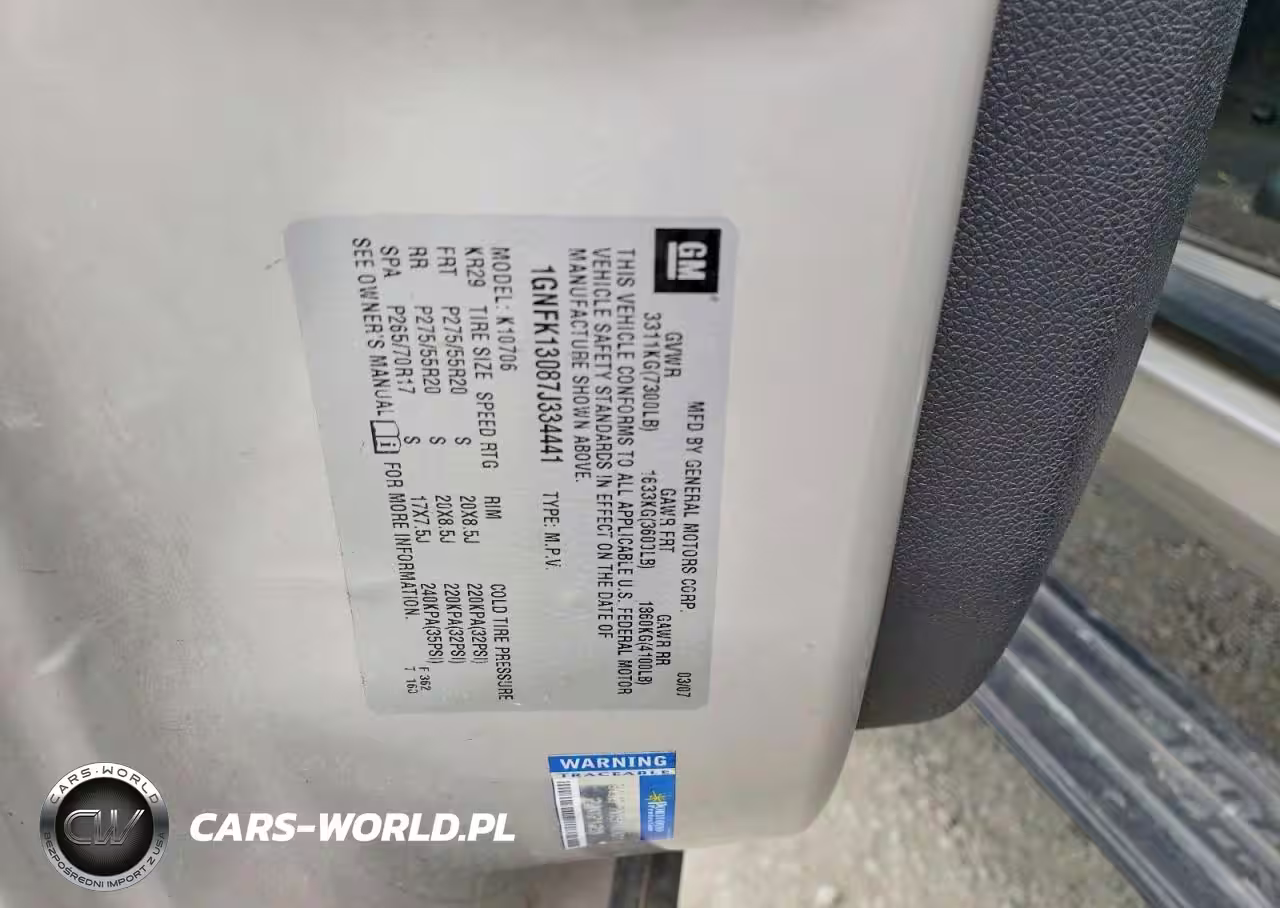 Copart Nr: C-48176306 VIN: 1GNFK13087J334441 Port: Los Angeles, CA