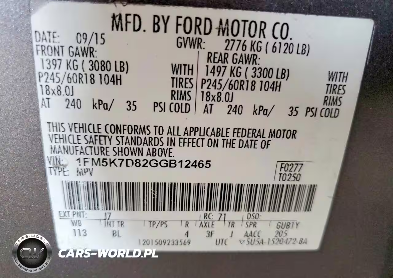 Copart Nr: C-48183046 VIN: 1FM5K7D82GGB12465 Port: Los Angeles, CA