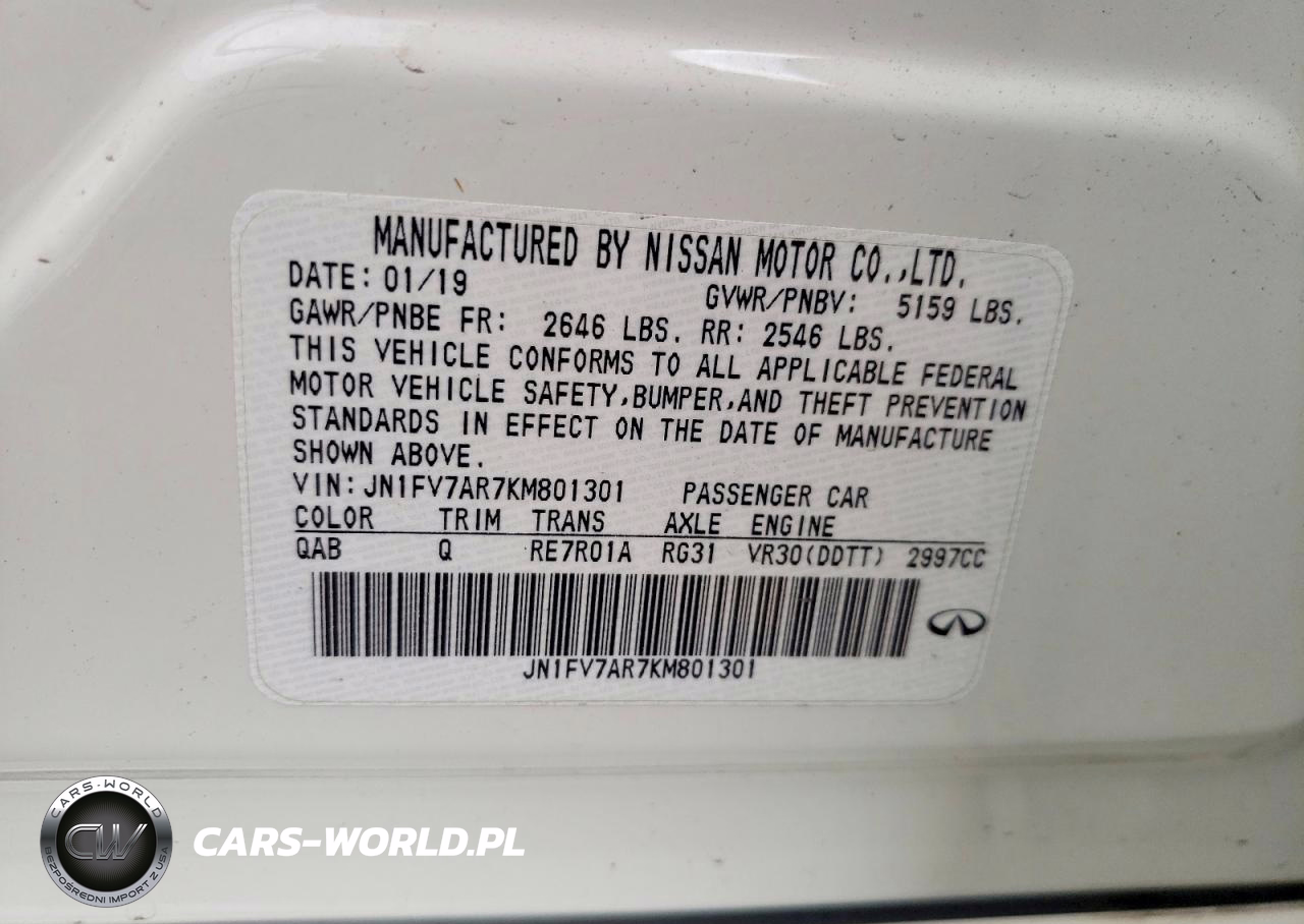 Copart Nr: C-48186366 VIN: JN1FV7AR7KM801301 Port: Elizabeth, NJ