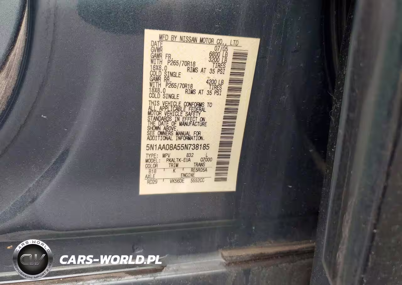 Copart Nr: C-48199026 VIN: 5N1AA08A55N738185 Port: Los Angeles, CA