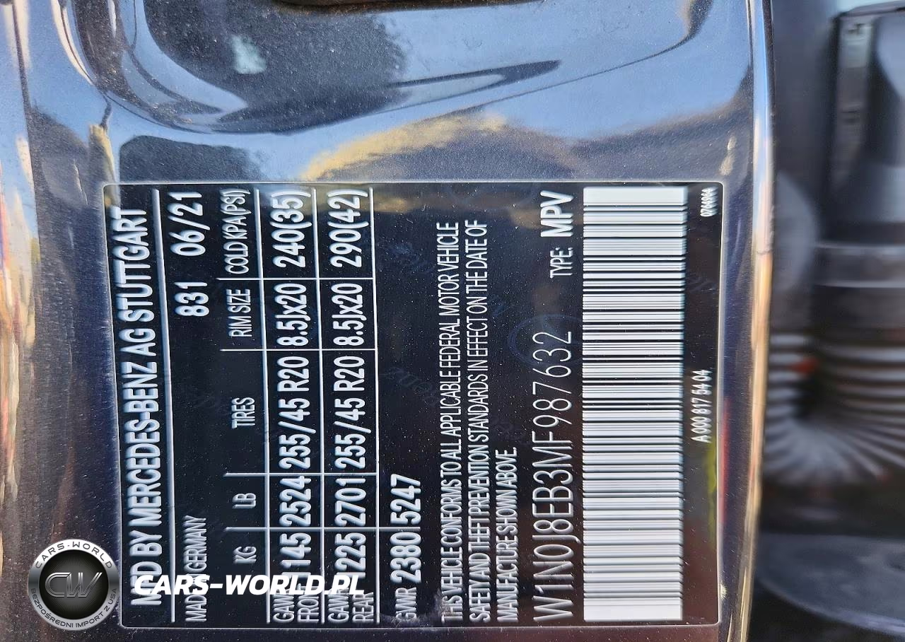 Copart Nr: C-48200136 VIN: W1N0J8EB3MF987632 Port: Los Angeles, CA