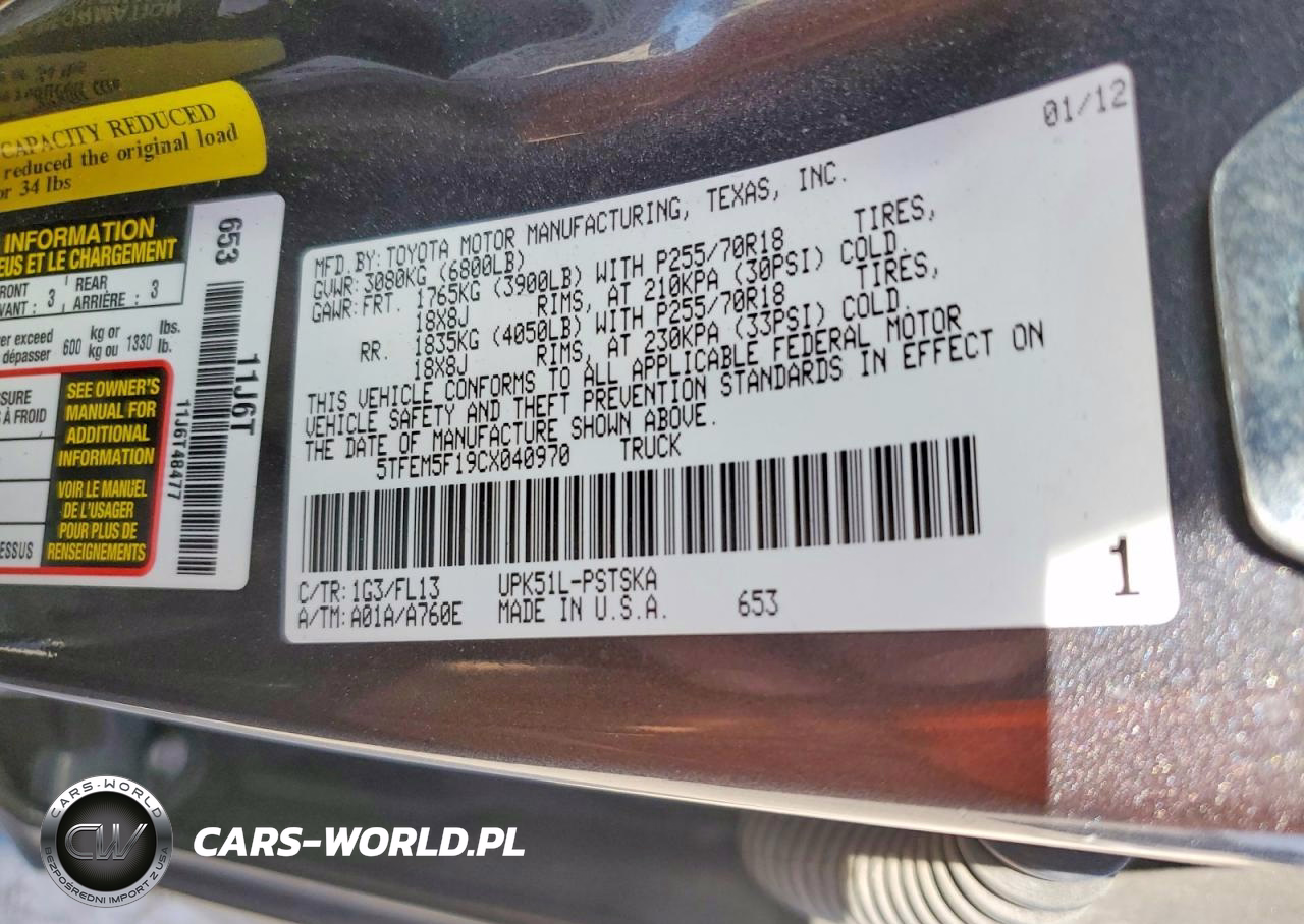 Copart Nr: C-48210626 VIN: 5TFEM5F19CX040970 Port: Houston, TX