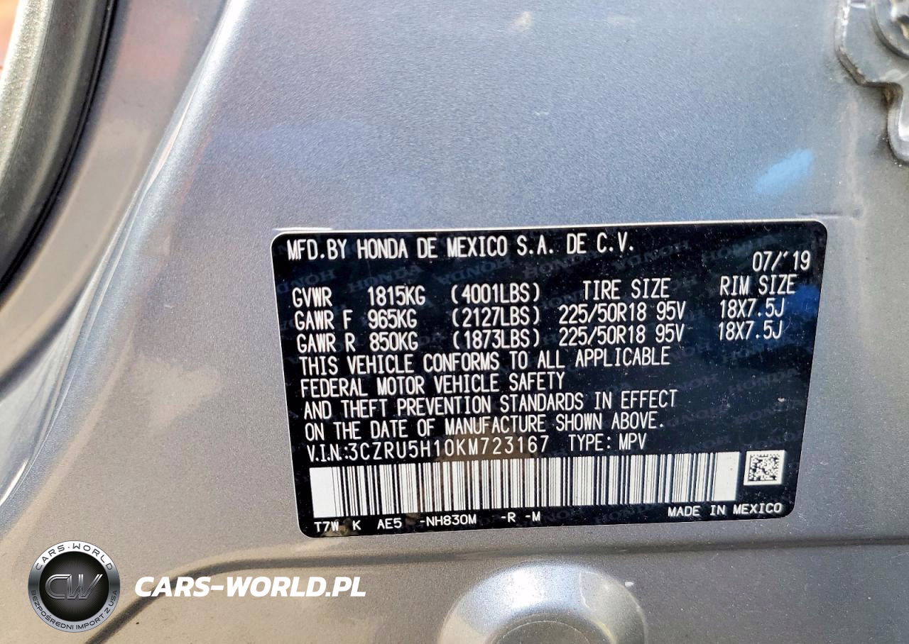 Copart Nr: C-48217256 VIN: 3CZRU5H10KM723167 Port: Elizabeth, NJ