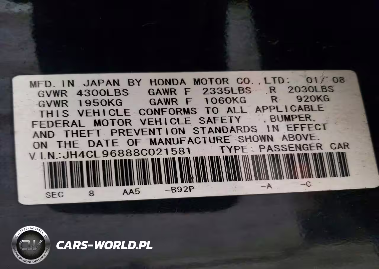 Copart Nr: C-48228046 VIN: JH4CL96888C021581 Port: Elizabeth, NJ