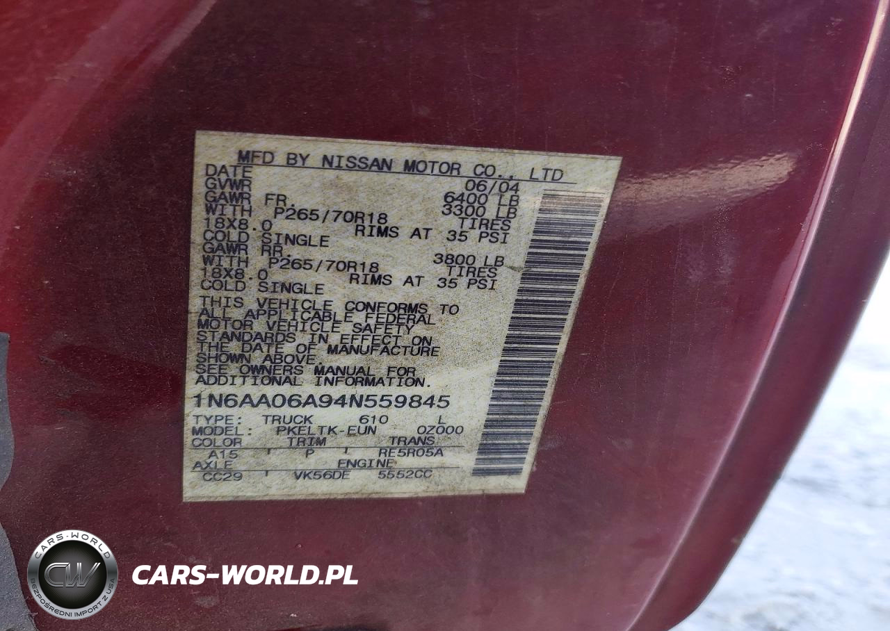 Copart Nr: C-48228296 VIN: 1N6AA06A94N559845 Port: Savannah, GA