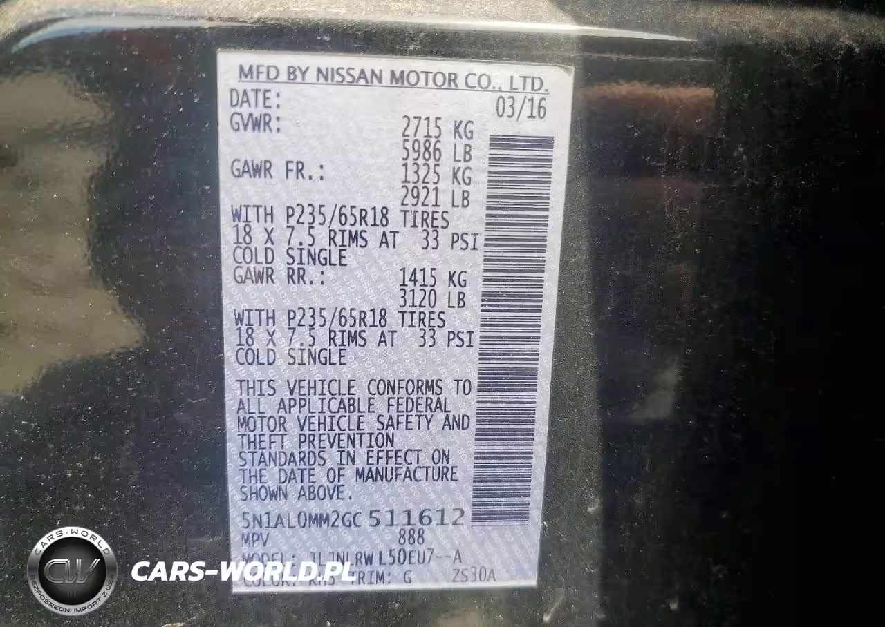 Copart Nr: C-48234826 VIN: 5N1AL0MM2GC511612 Port: Elizabeth, NJ