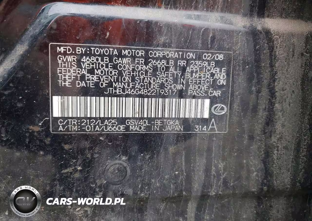 Copart Nr: C-48238876 VIN: JTHBJ46G482219317 Port: Elizabeth, NJ