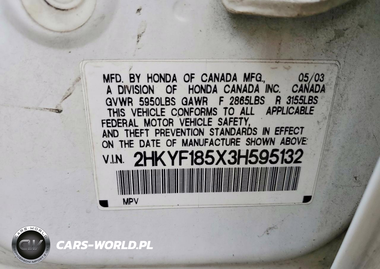 Copart Nr: C-48240746 VIN: 2HKYF185X3H595132 Port: Indianapolis, IN