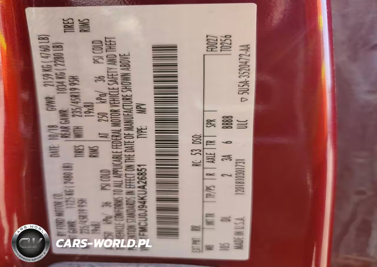 Copart Nr: C-48246766 VIN: 1FMCU0J94KUA26851 Port: Indianapolis, IN