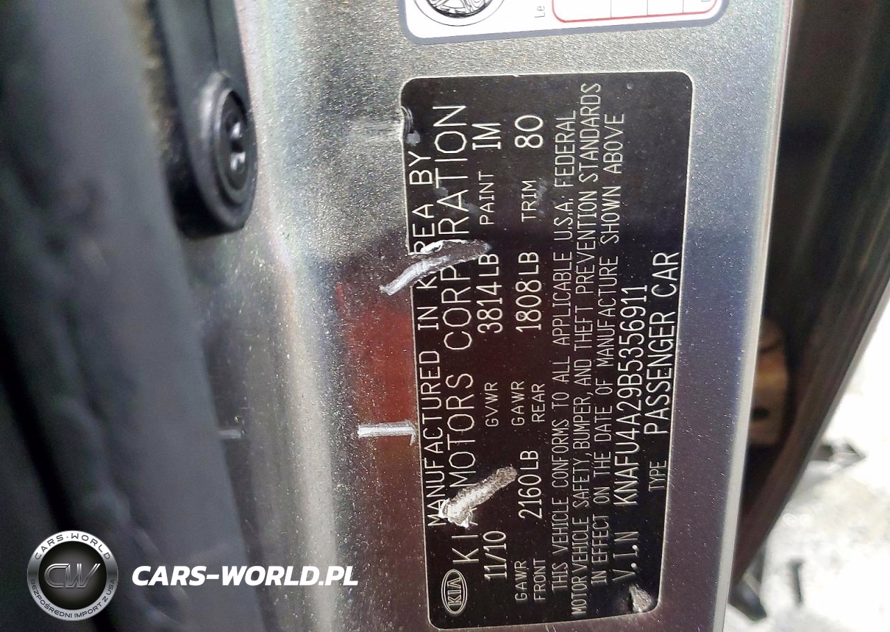 Copart Nr: C-48257006 VIN: KNAFU4A29B5356911 Port: Indianapolis, IN