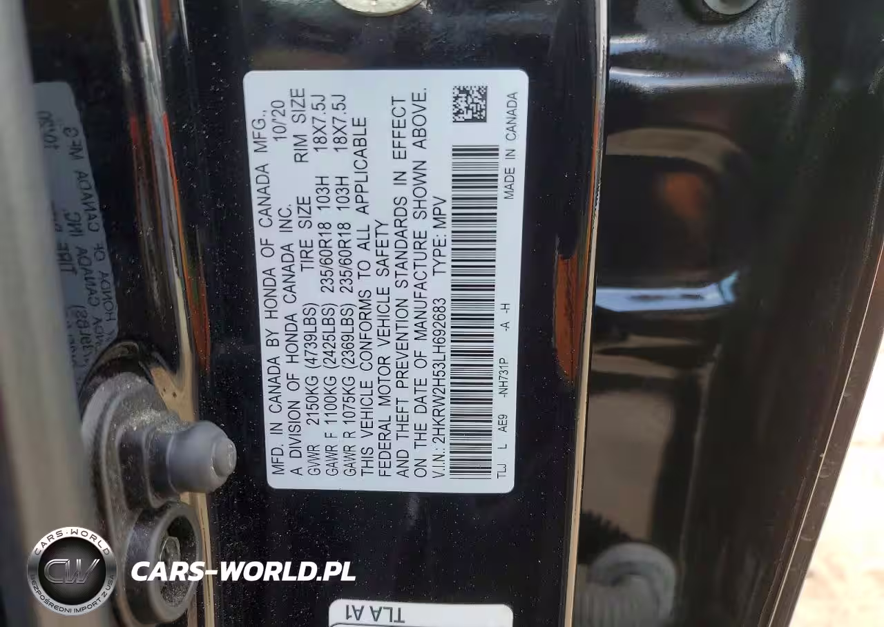 Copart Nr: C-48258826 VIN: 2HKRW2H53LH692683 Port: Houston, TX