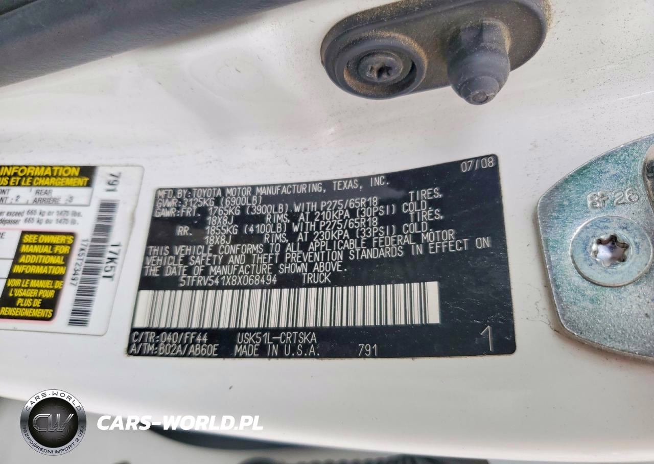 Copart Nr: C-48264146 VIN: 5TFRV541X8X068494 Port: Los Angeles, CA
