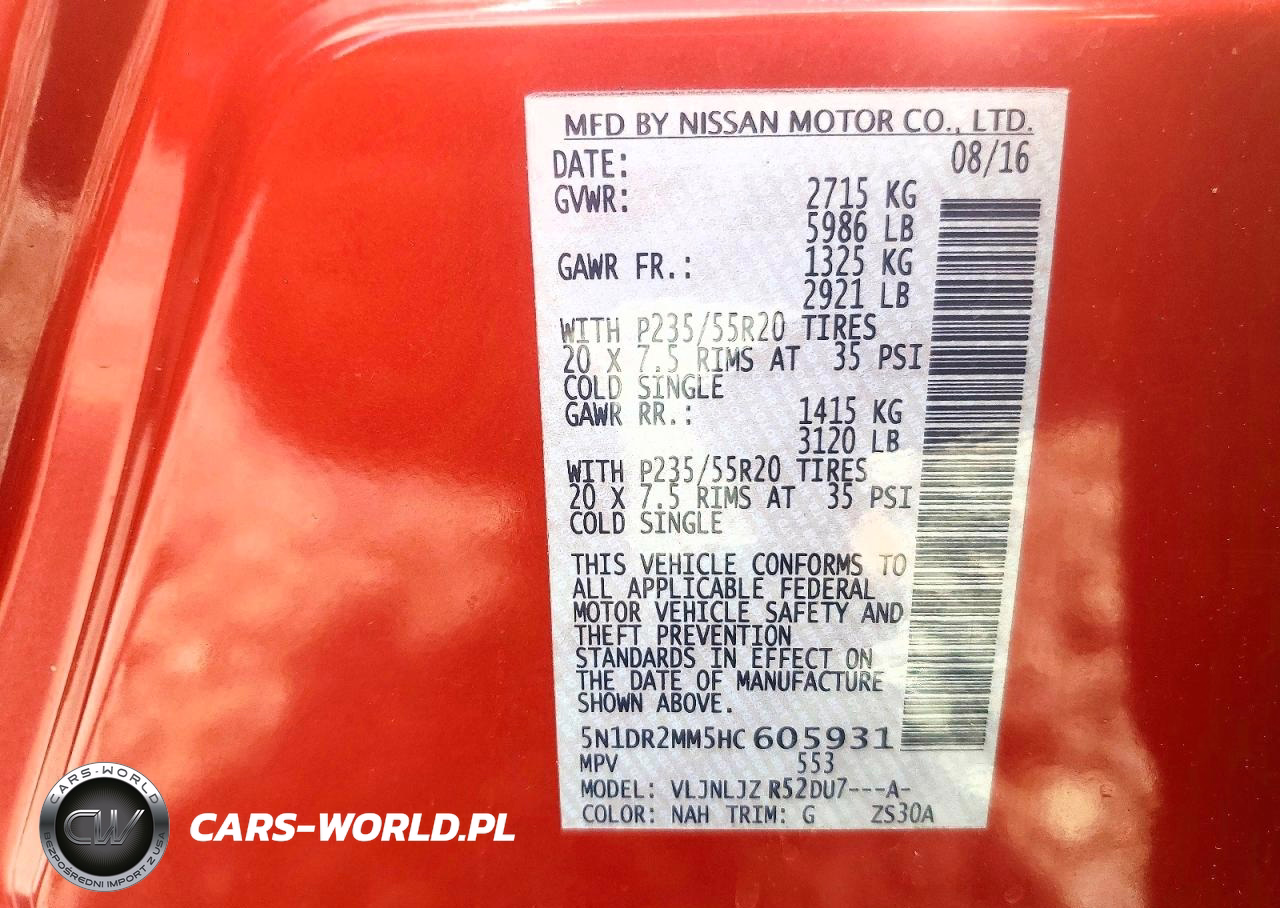 Copart Nr: C-48290756 VIN: 5N1DR2MM5HC605931 Port: Savannah, GA