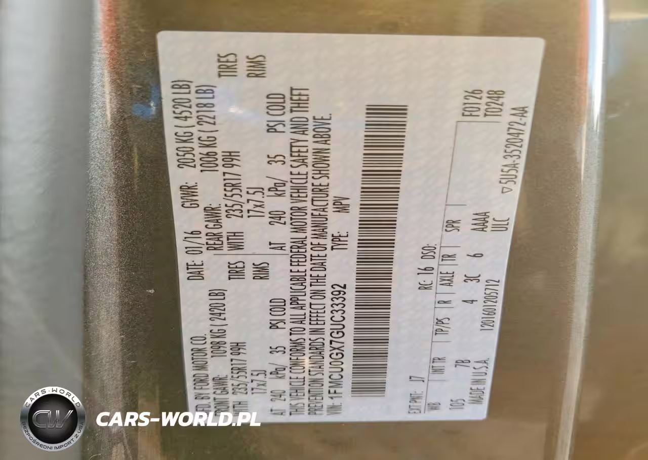 Copart Nr: C-48294646 VIN: 1FMCU0GX7GUC33392 Port: Elizabeth, NJ