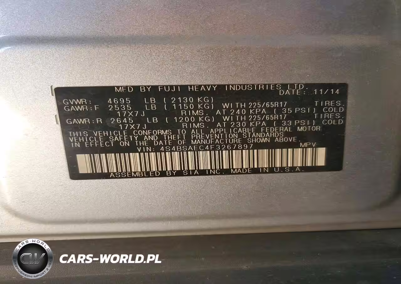 Copart Nr: C-48309156 VIN: 4S4BSAEC4F3267897 Port: Los Angeles, CA