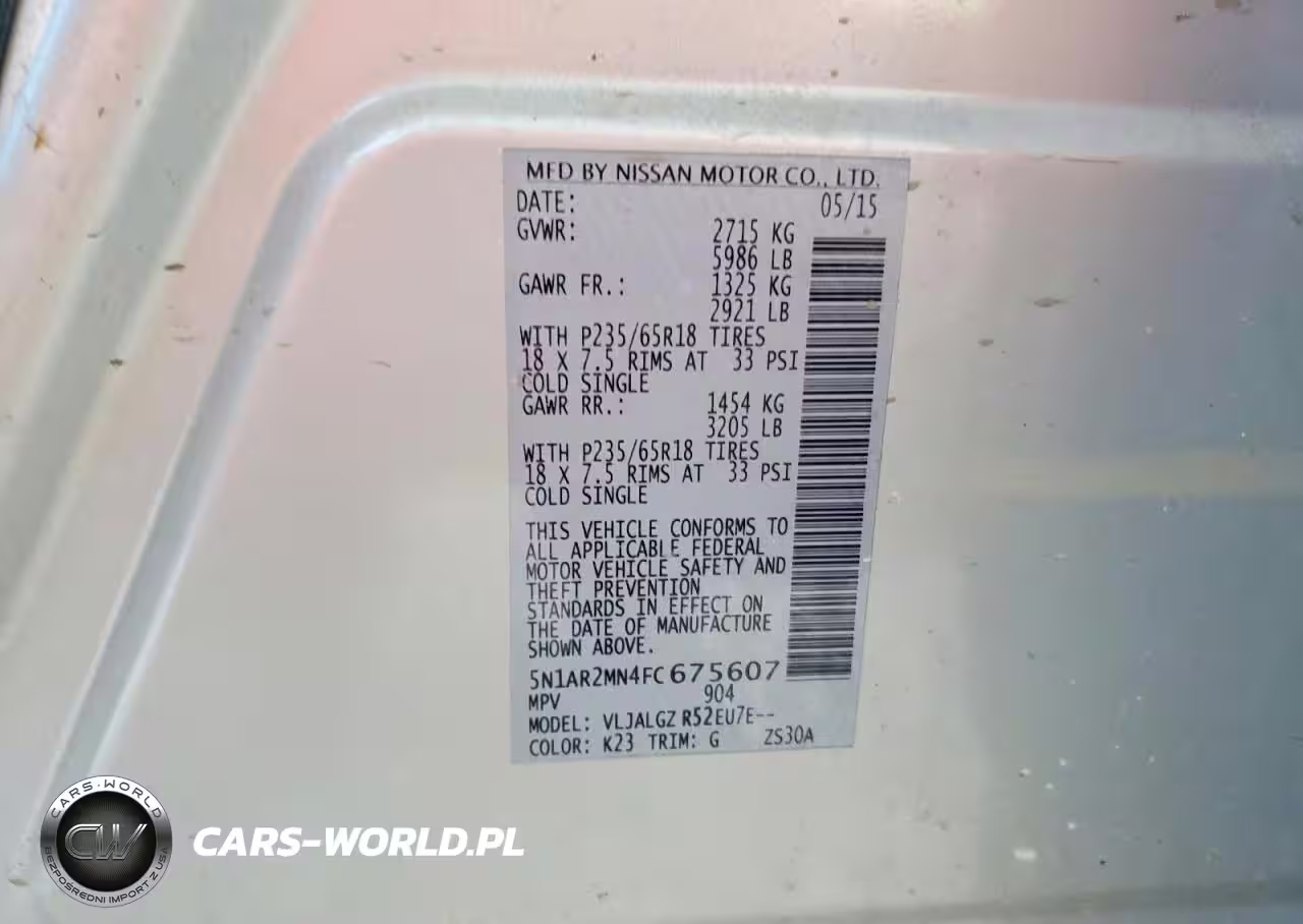 Copart Nr: C-48313956 VIN: 5N1AR2MN4FC675607 Port: Savannah, GA