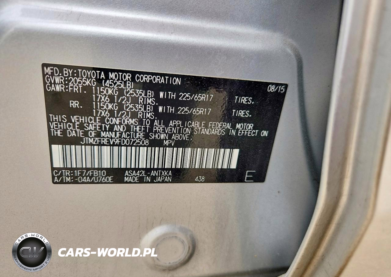 Copart Nr: C-48317156 VIN: JTMZFREV9FD072508 Port: Savannah, GA