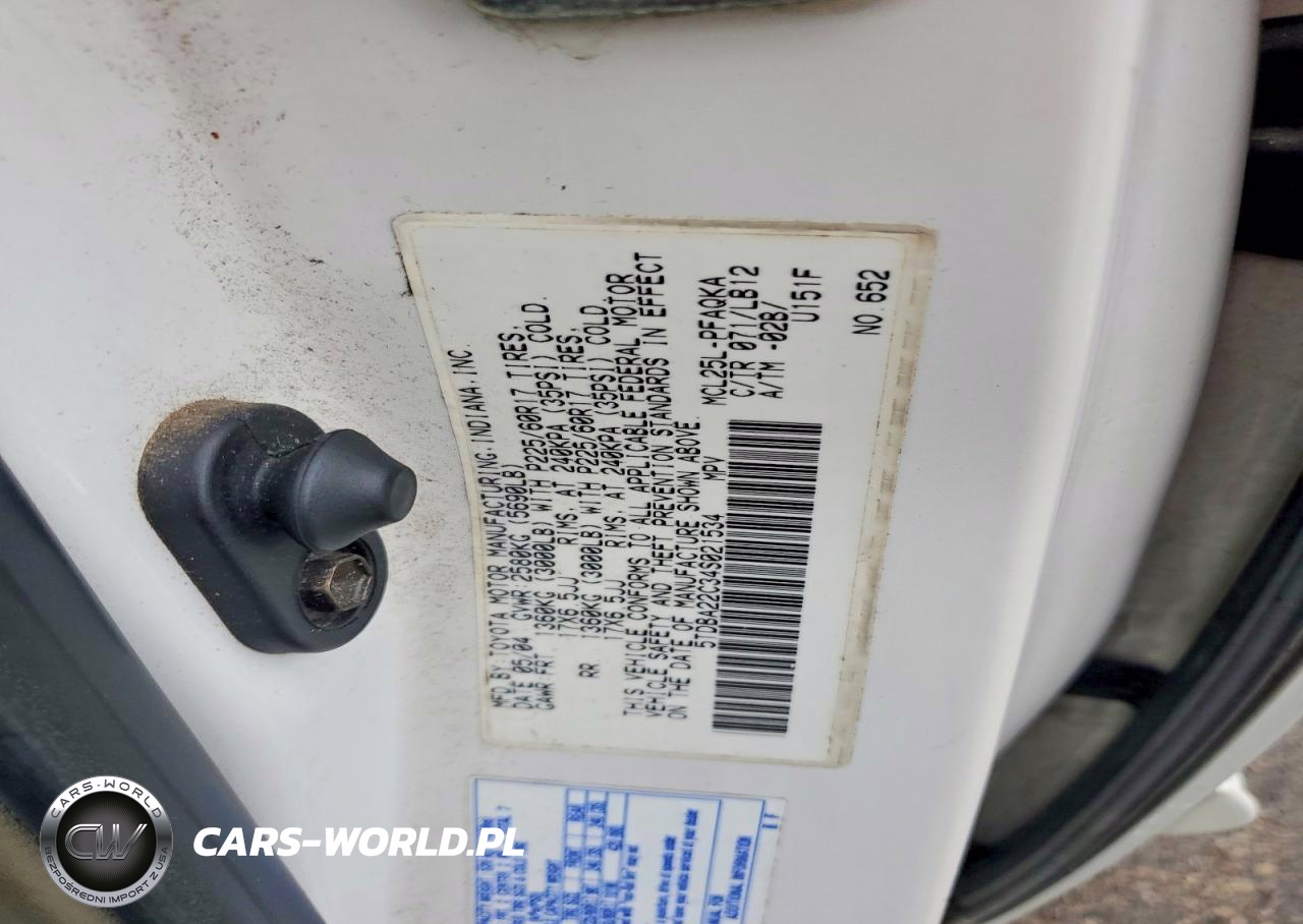 Copart Nr: C-48321916 VIN: 5TDBA22C34S021534 Port: Indianapolis, IN