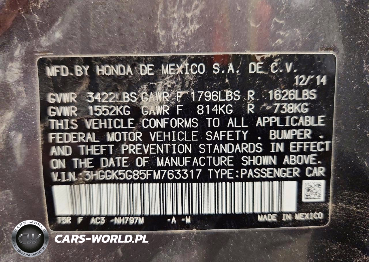 Copart Nr: C-48347976 VIN: 3HGGK5G85FM763317 Port: Indianapolis, IN
