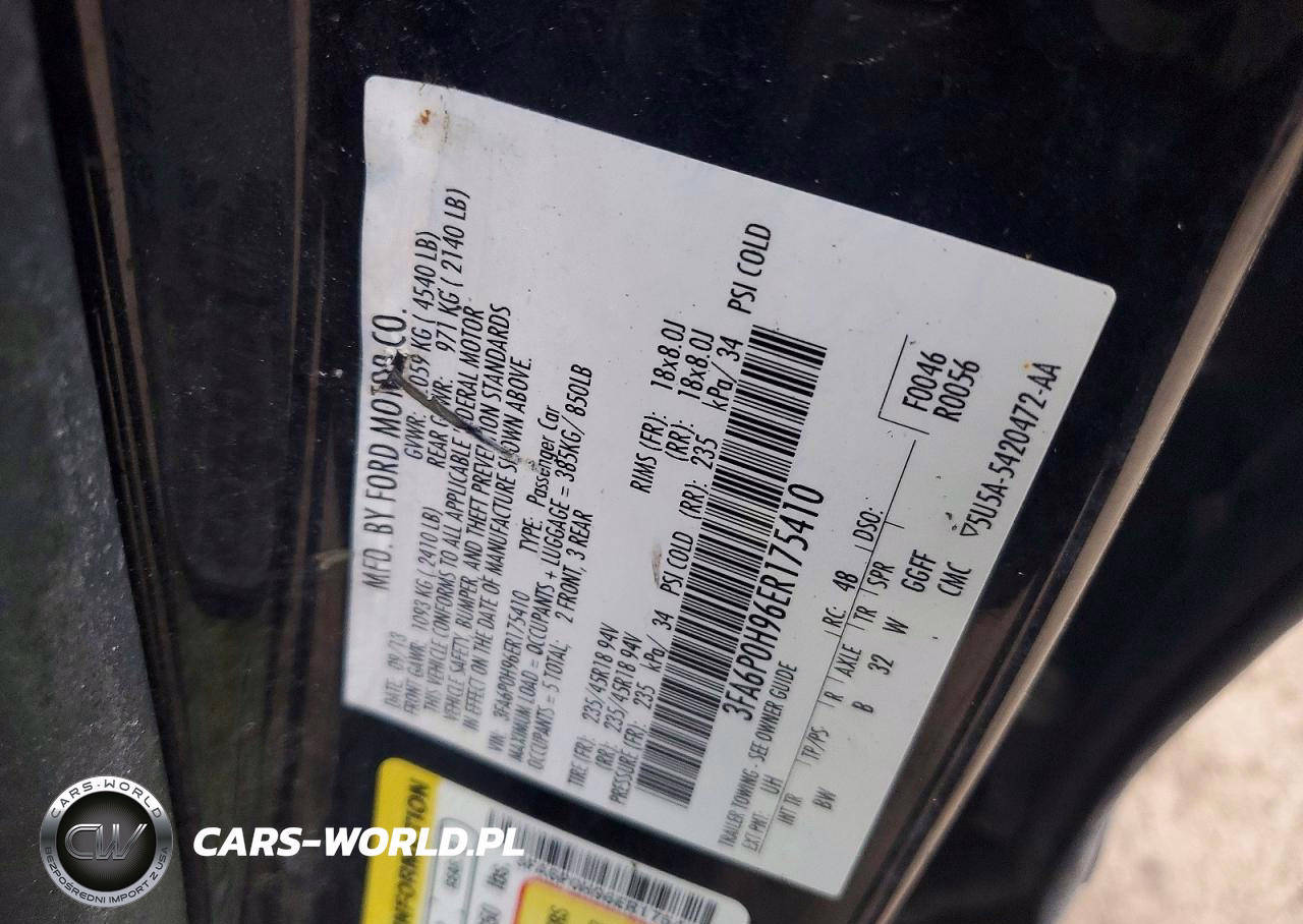 Copart Nr: C-48354846 VIN: 3FA6P0H96ER175410 Port: Indianapolis, IN