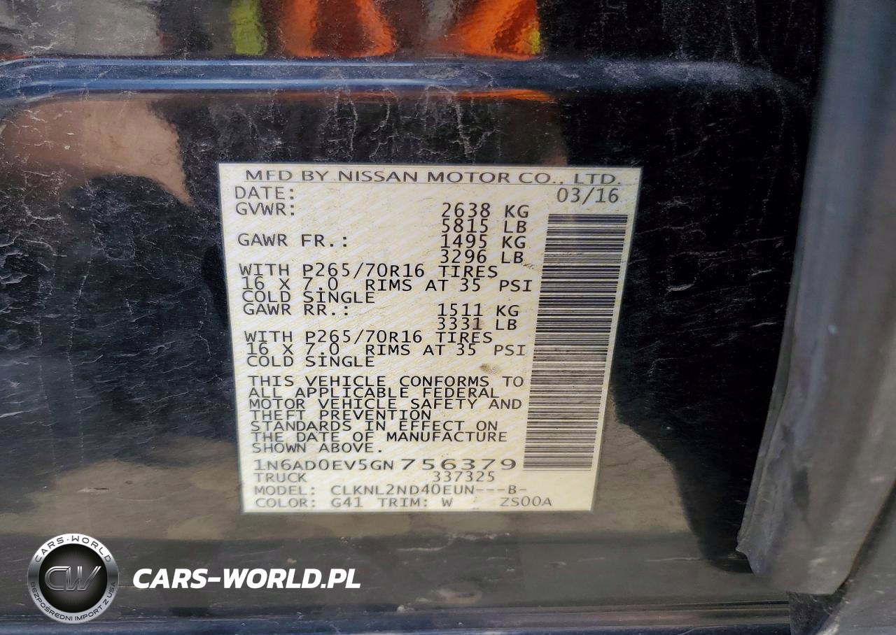 Copart Nr: C-48356676 VIN: 1N6AD0EV5GN756379 Port: Elizabeth, NJ