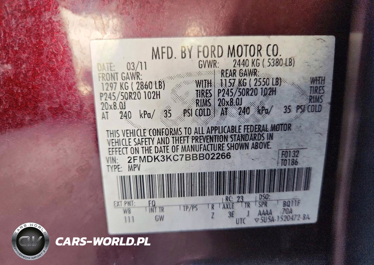 Copart Nr: C-48364196 VIN: 2FMDK3KC7BBB02266 Port: Houston, TX