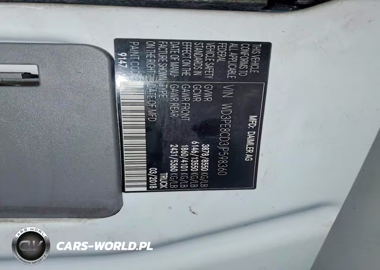 Copart Nr: C-48389426 VIN: WD3PE8CD3JP598360 Port: Elizabeth, NJ