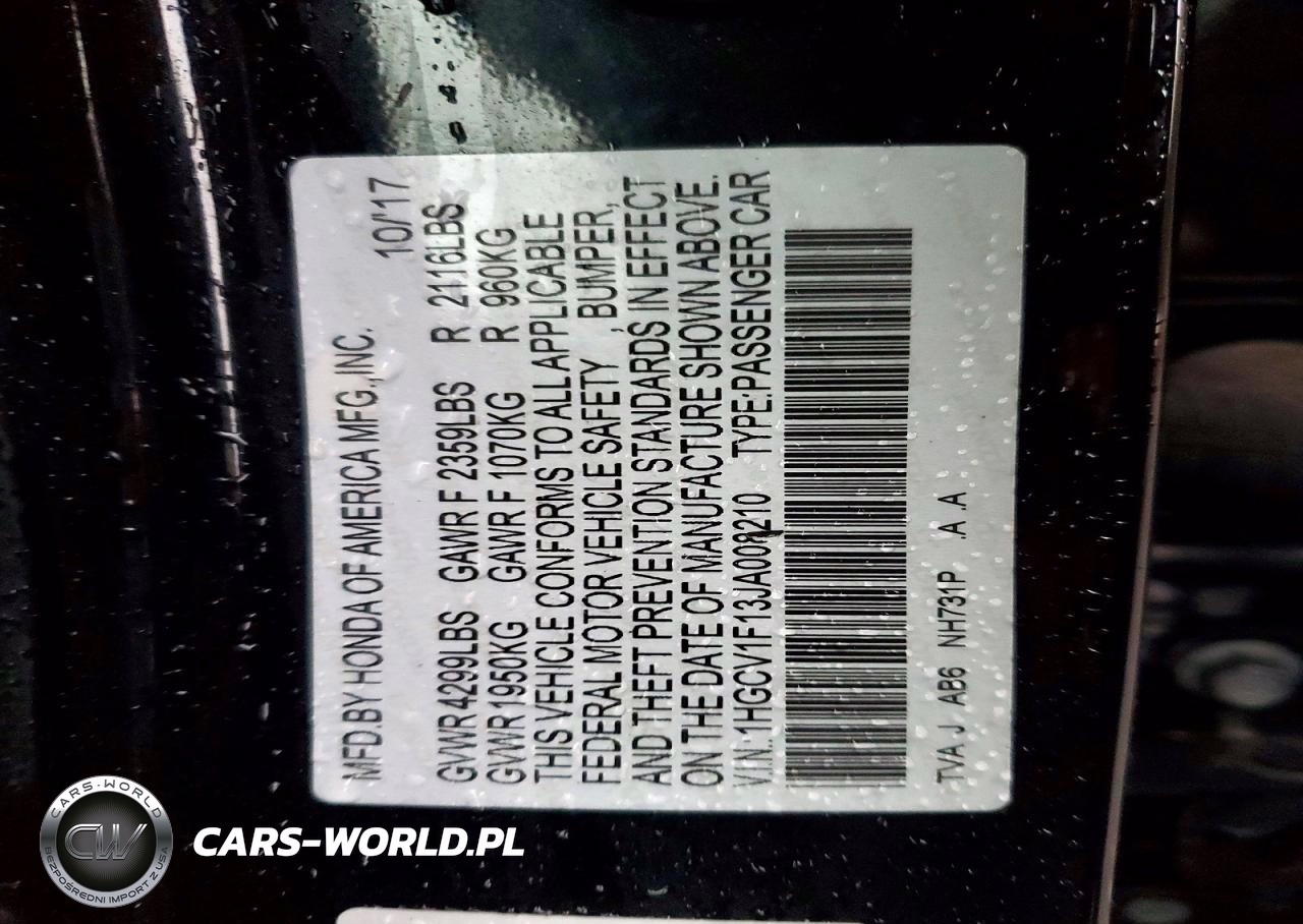 Copart Nr: C-48394326 VIN: 1HGCV1F13JA008210 Port: Elizabeth, NJ