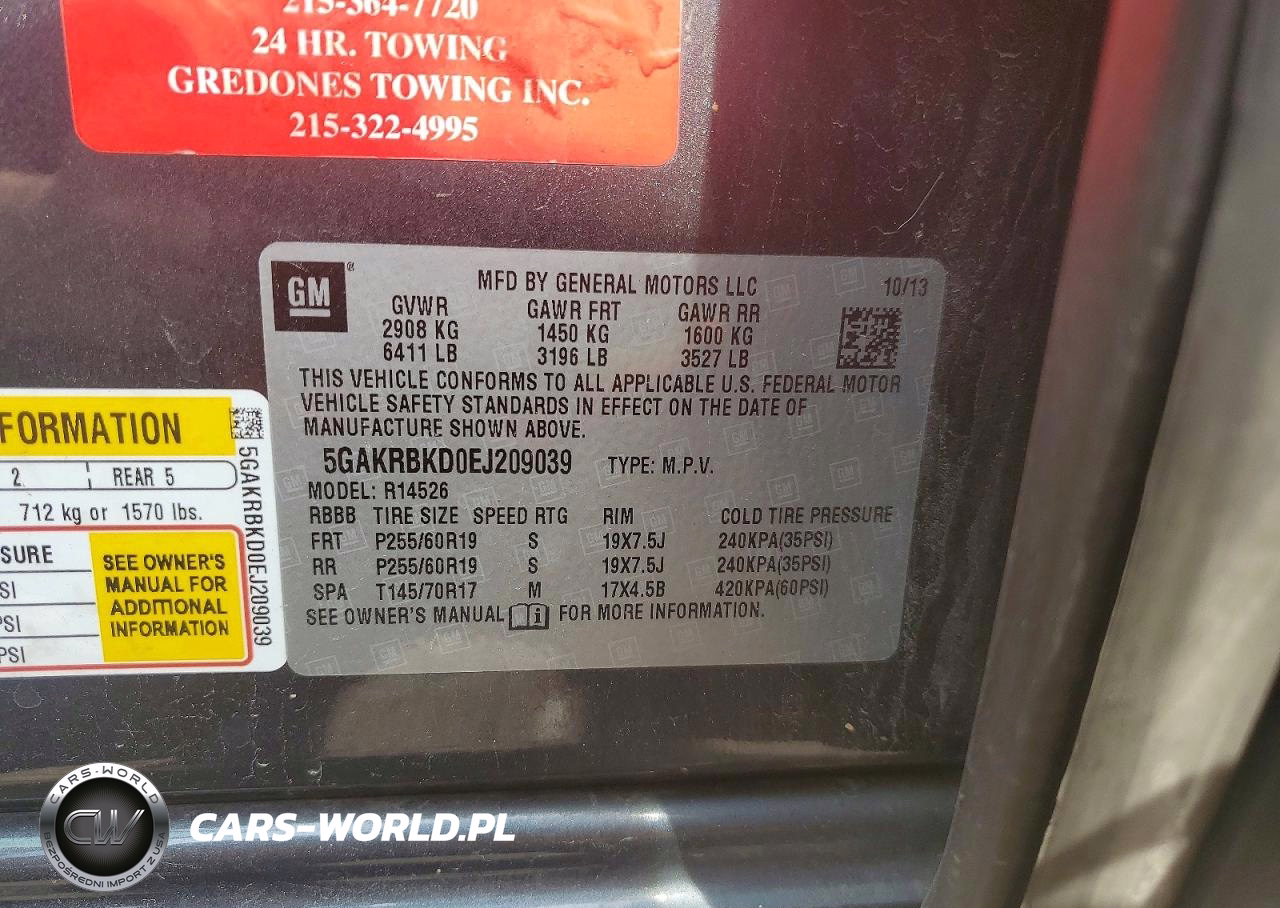 Copart Nr: C-48395256 VIN: 5GAKRBKD0EJ209039 Port: Elizabeth, NJ