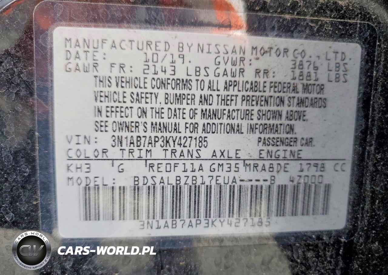 Copart Nr: C-48397606 VIN: 3N1AB7AP3KY427185 Port: Savannah, GA