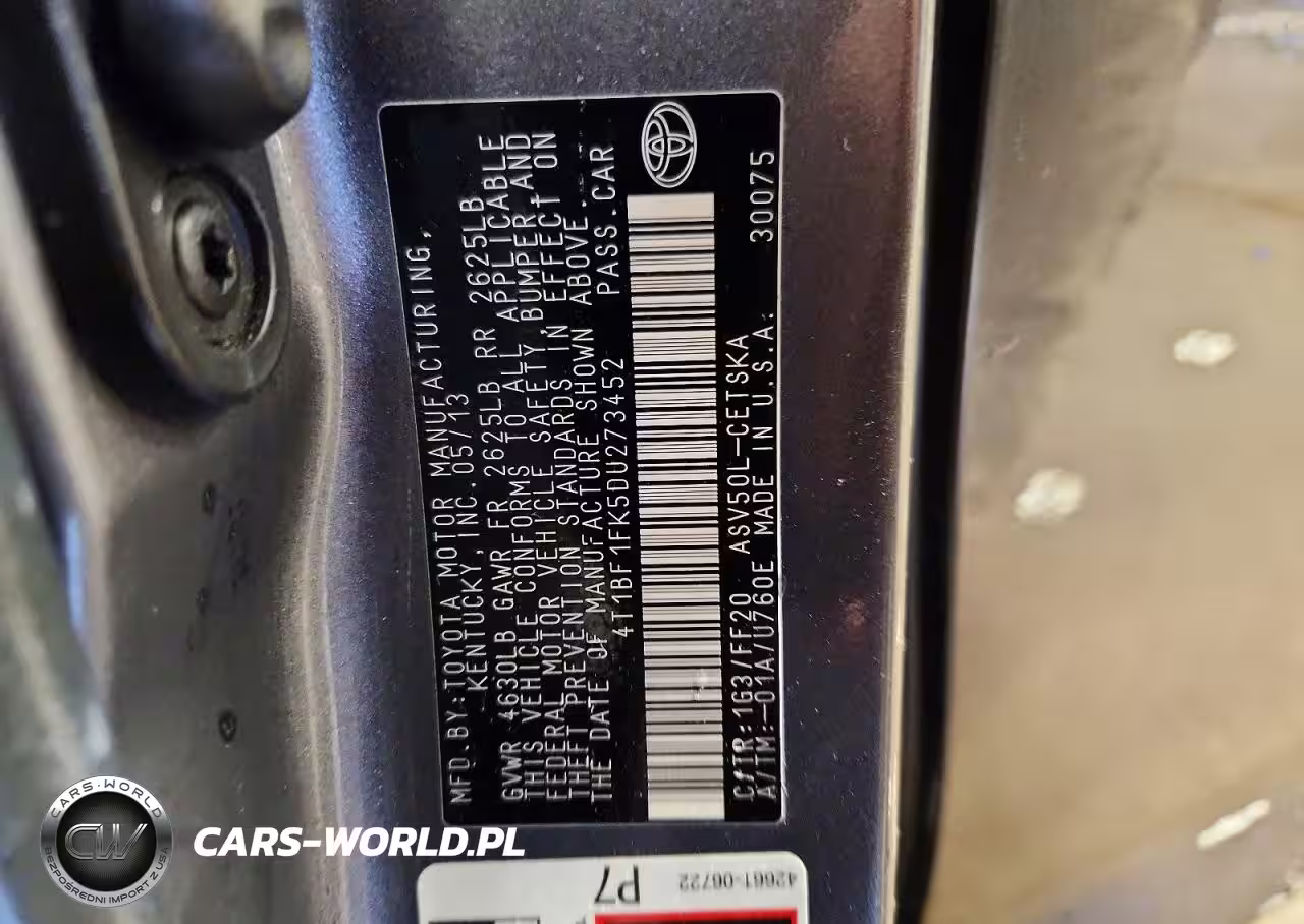 Copart Nr: C-48404876 VIN: 4T1BF1FK5DU273452 Port: Indianapolis, IN