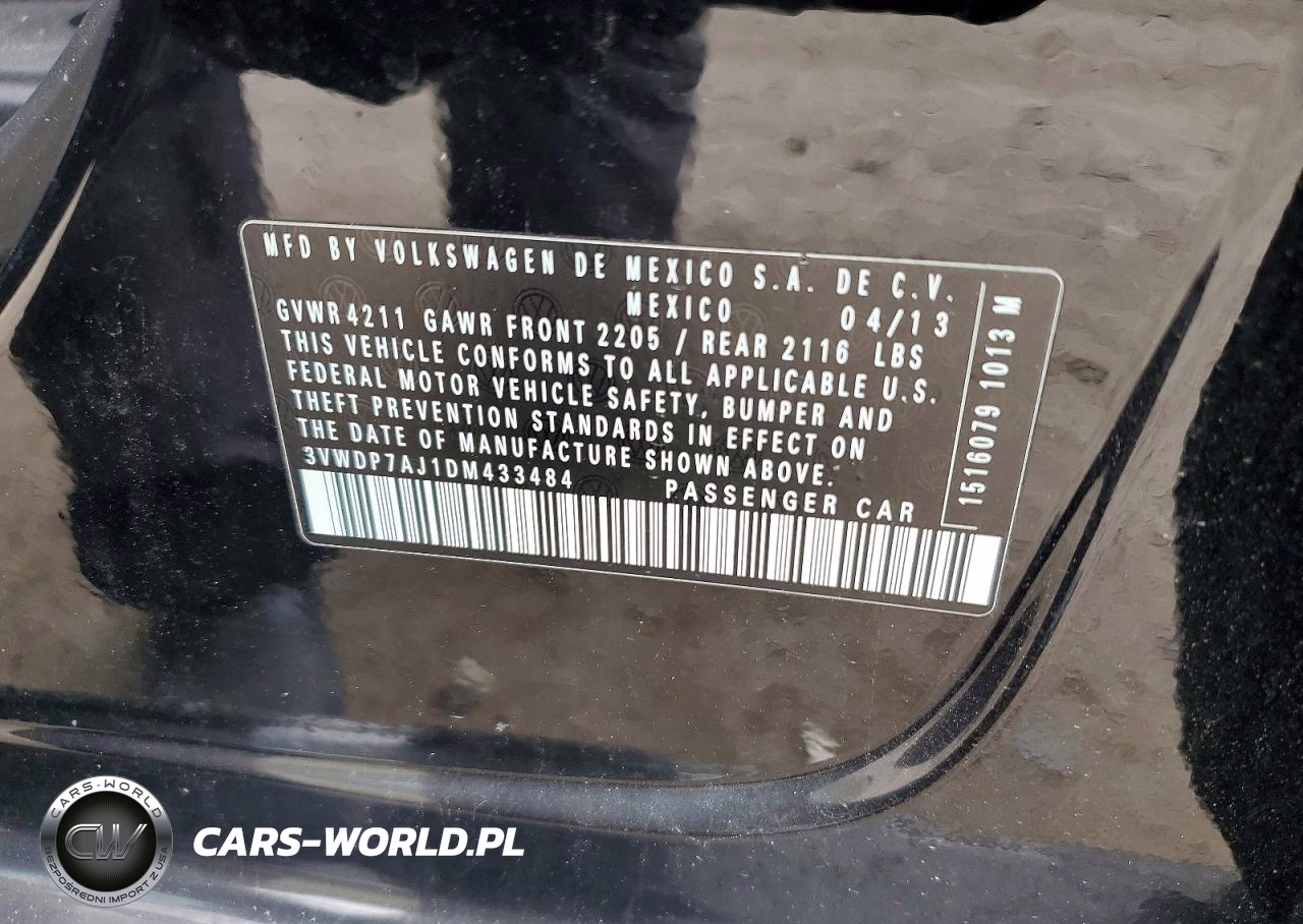 Copart Nr: C-48405226 VIN: 3VWDP7AJ1DM433484 Port: Elizabeth, NJ