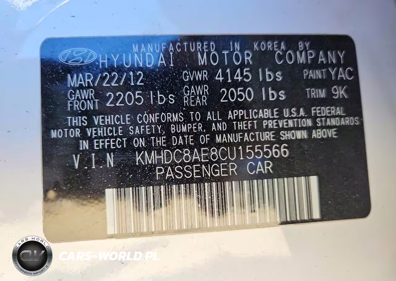 Copart Nr: C-48457876 VIN: KMHDC8AE8CU155566 Port: Los Angeles, CA