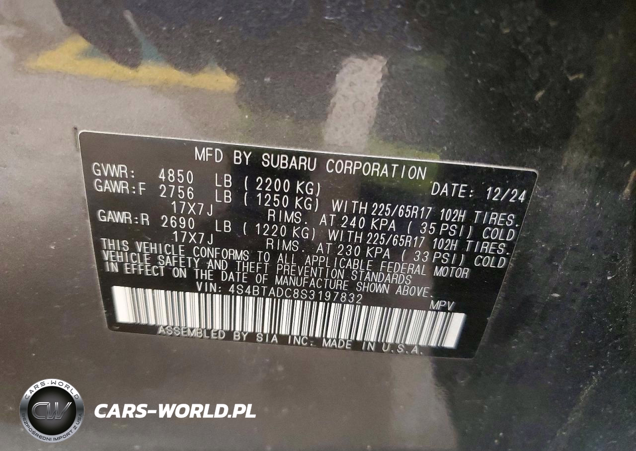 Copart Nr: C-48462886 VIN: 4S4BTADC8S3197832 Port: Indianapolis, IN