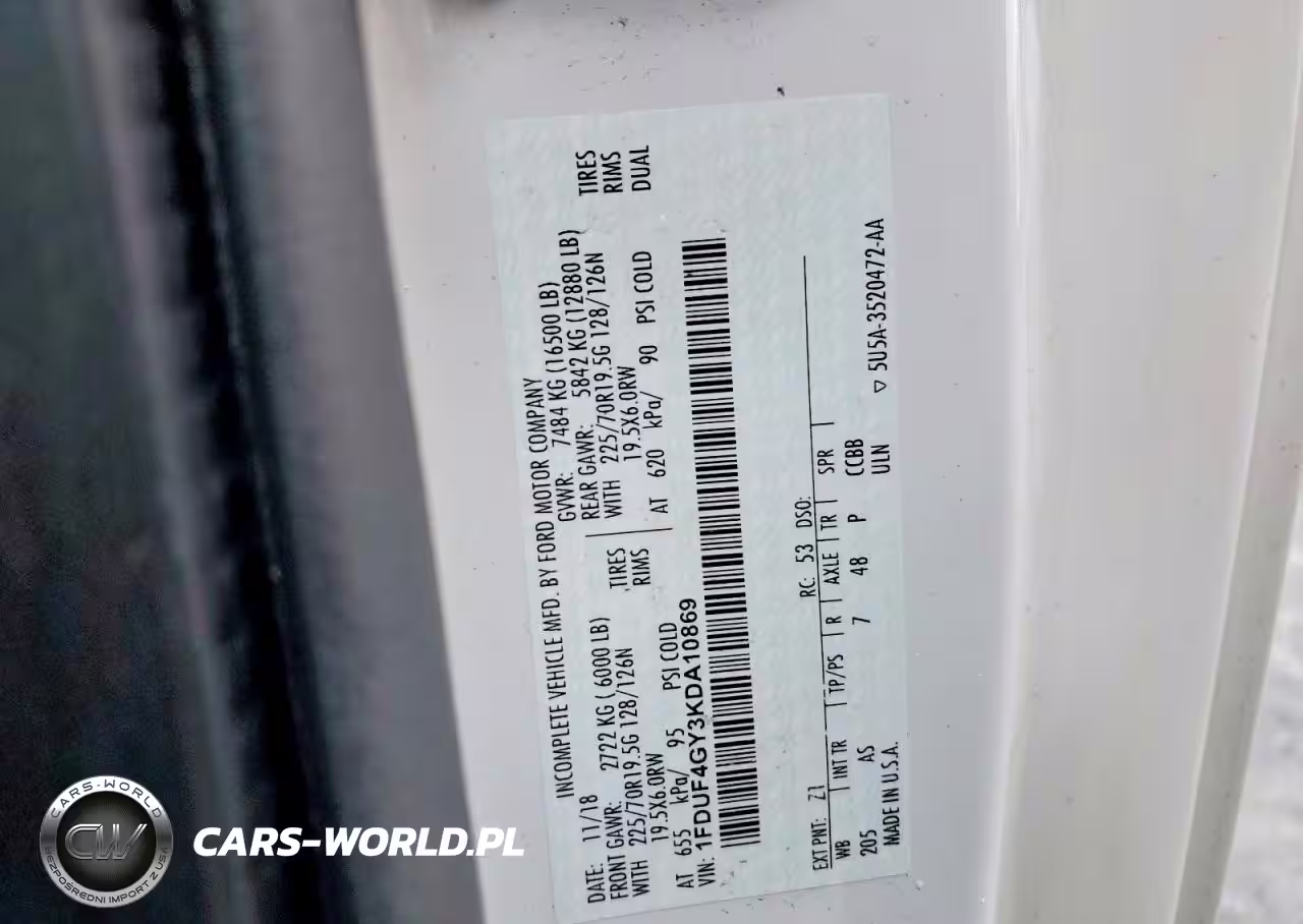 Copart Nr: C-48463066 VIN: 1FDUF4GY3KDA10869 Port: Elizabeth, NJ