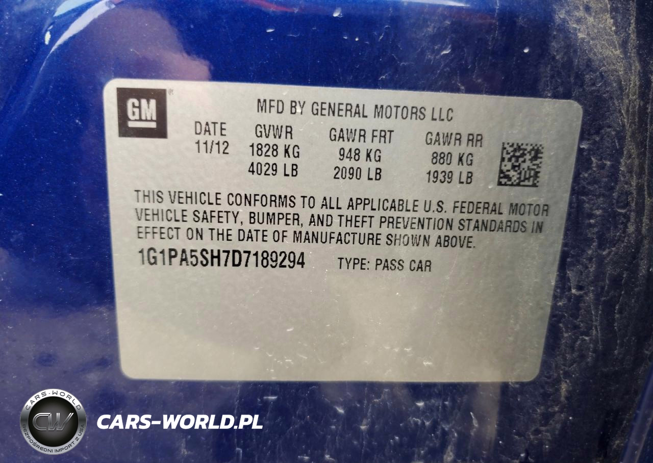 Copart Nr: C-48474316 VIN: 1G1PA5SH7D7189294 Port: Indianapolis, IN