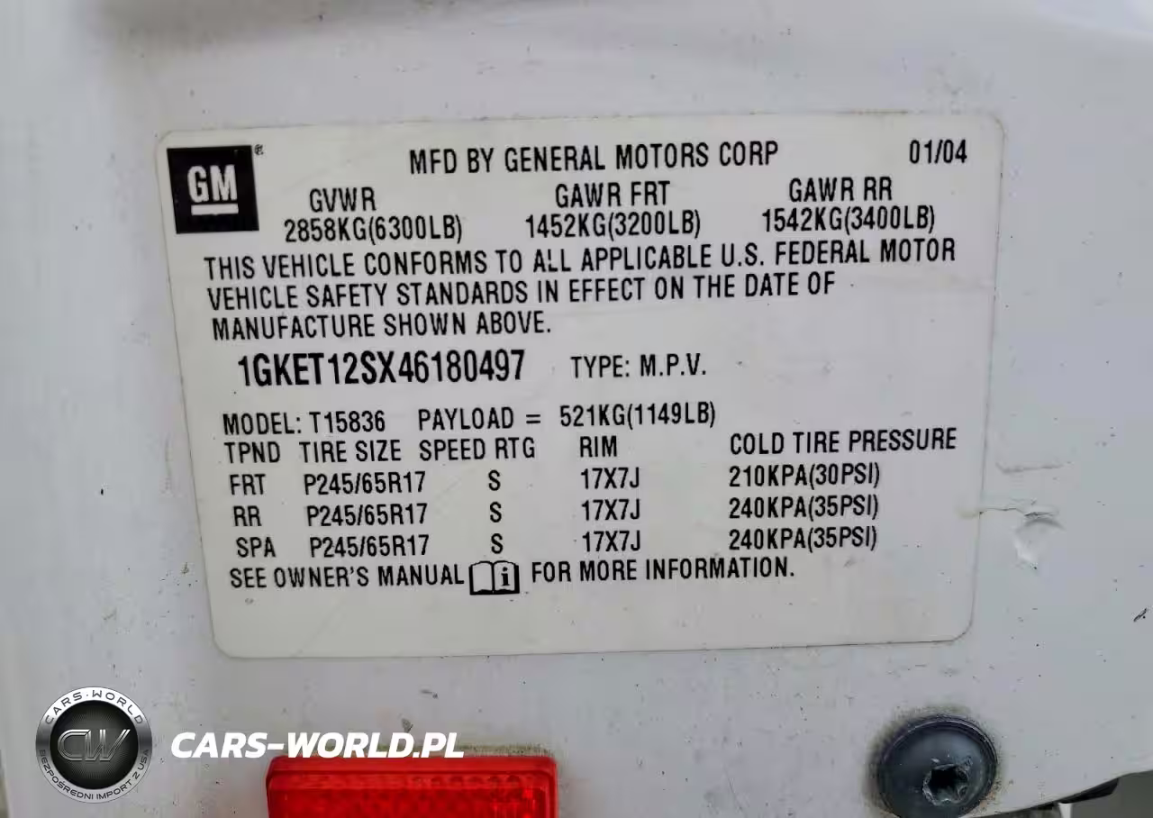 Copart Nr: C-48482946 VIN: 1GKET12SX46180497 Port: Indianapolis, IN