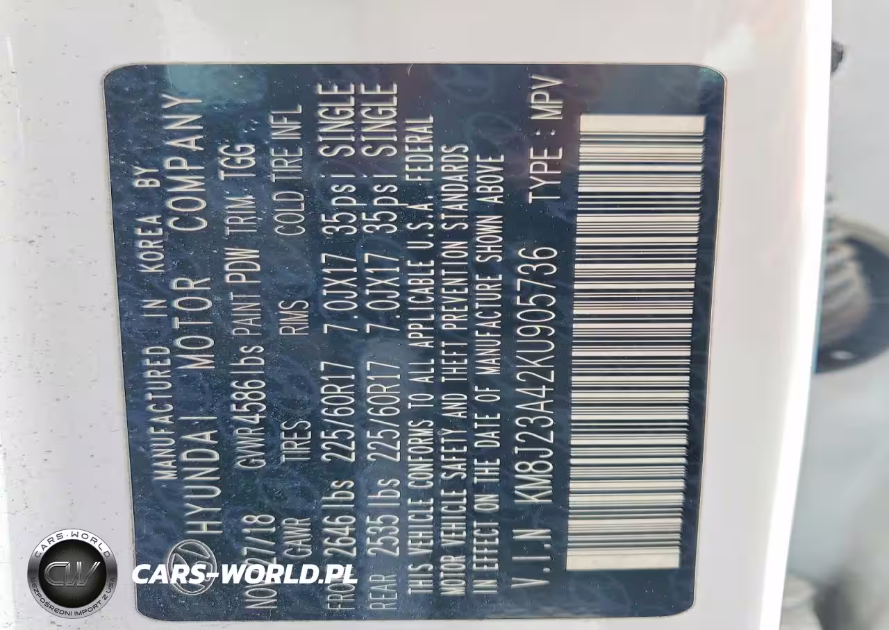 Copart Nr: C-48485976 VIN: KM8J23A42KU905736 Port: Savannah, GA