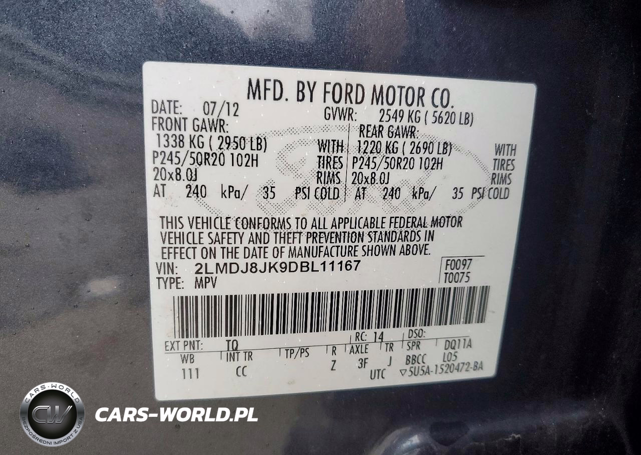 Copart Nr: C-48487396 VIN: 2LMDJ8JK9DBL11167 Port: Elizabeth, NJ