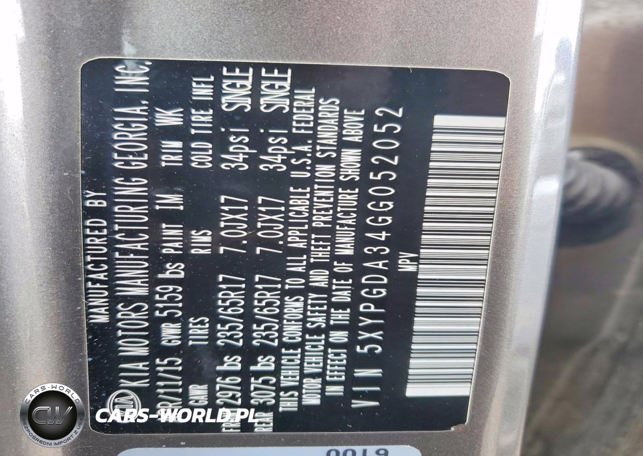 Copart Nr: C-48492546 VIN: 5XYPGDA34GG052052 Port: Elizabeth, NJ